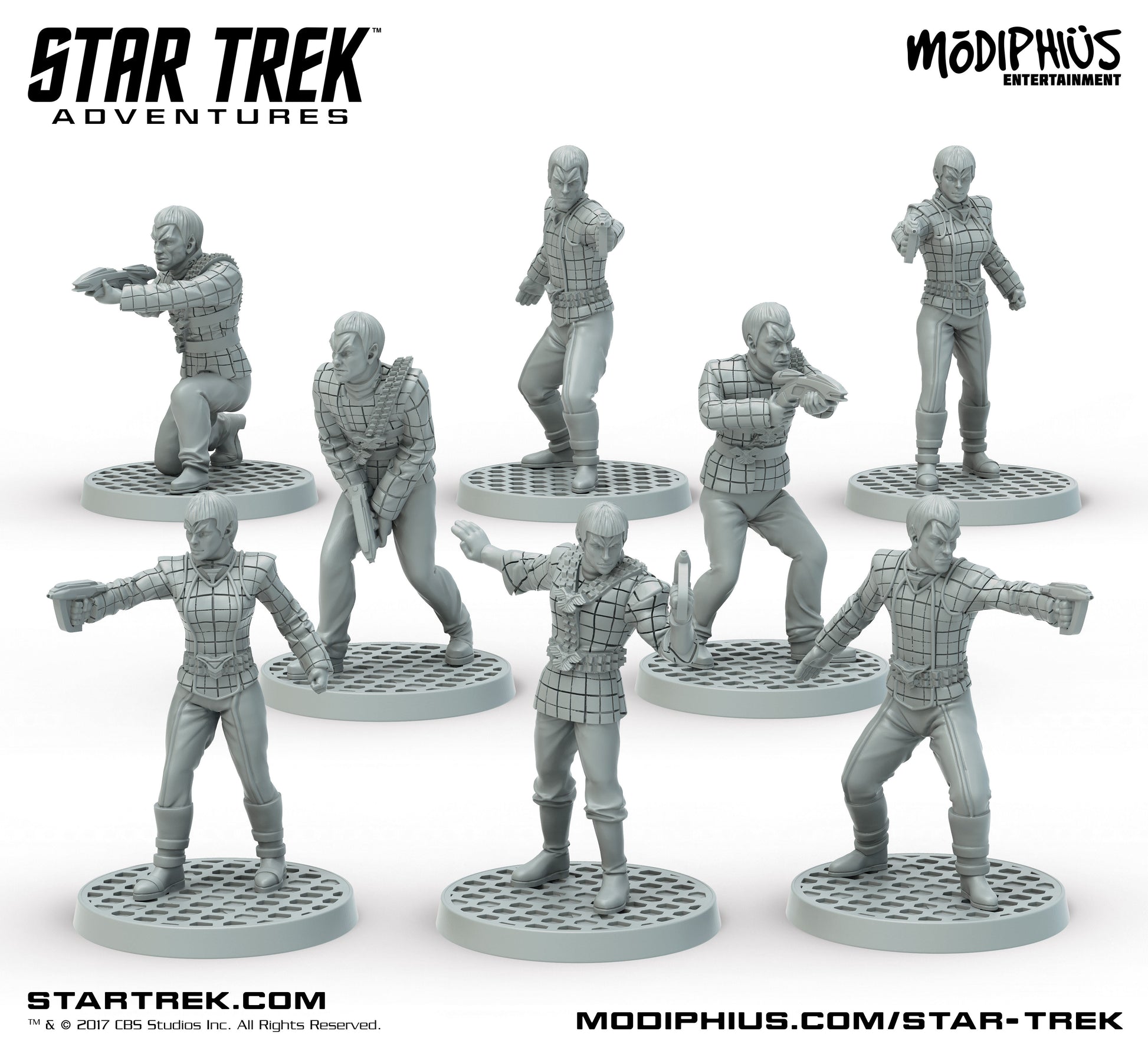 Beam a romulan strike team onto YOUR tabletop. This box set of 8 highly detailed, 32mm scale, resin miniatures of Romulan officers contains: