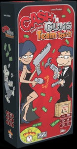 You're no longer looting and shooting on your own with Cash 'n Guns: Team Spirit. This expansion features rules for team play and enables a ninth player to take part in the action. It also introduces a deck of duplicitous mercenaries: twelve thugs-for-hire who can give your team a temporary advantage and who bring a deeper strategic dimension to the team game.