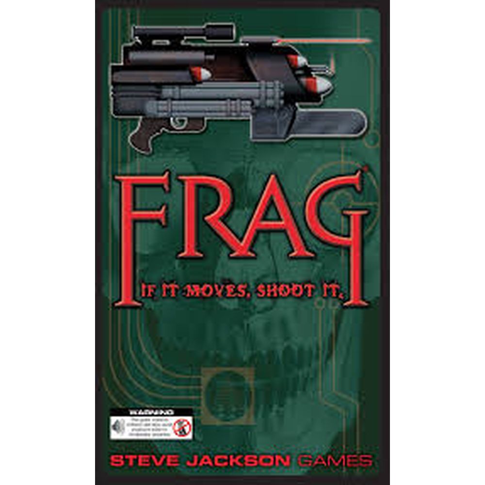 | Game starts. Enemy in sight . . . Frag him! Grab his stuff! Run! Get a bigger gun! Grab some armor! There he is again! Frag him! Whoa, there's another one. Run . . . you're hit! You're down. Respawn! Grab a weapon! Start again! Frag is a computer game without a computer. It's a "first-person shooter" on a tabletop. Move your fighter and frag your foes; draw cards for weapons, armor, and gadgets; move through the blood spatters to restore your own health! If you die, you respawn and come back shooting! Easy to learn, fast-moving, fun . . . |