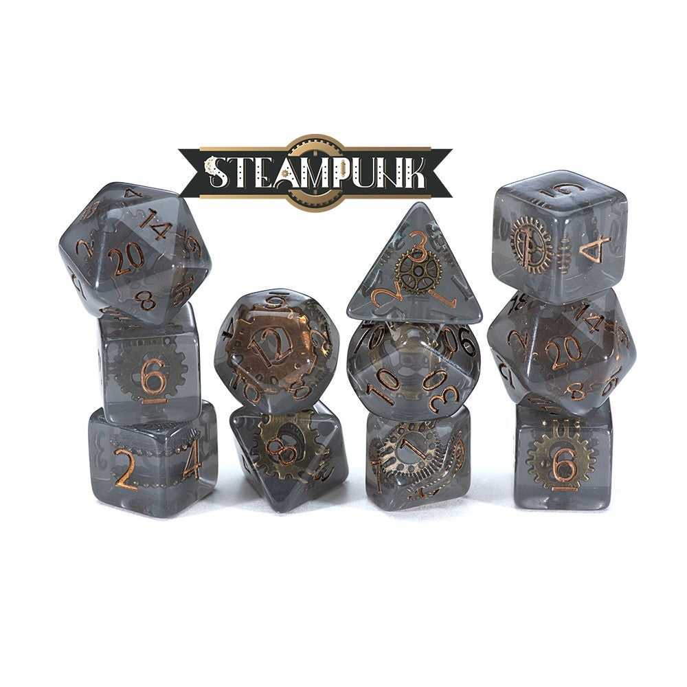 BRONZE STEAMPUNK GEARS SET IN TRANSPARENT SMOKE RESIN- W/ BRONZED NUMBERS.