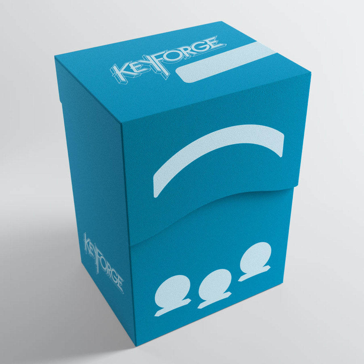 The KeyForge GEMINI Deck Box can hold one complete, double-sleeved KeyForge Deck and also contains an accessories drawer to keep Æmber, Keys, or any other extras. As an alternative to the accessories drawer, a second deck can be carried instead. The self-locking flap closure can be opened up to 180° for an easy access to the deck and drawer. The distinctive shape allows a clear sight of the unique deck name when opening. This product is also delivered with an exclusive Faction Sticker set to customize the box to match your KeyForge Deck.