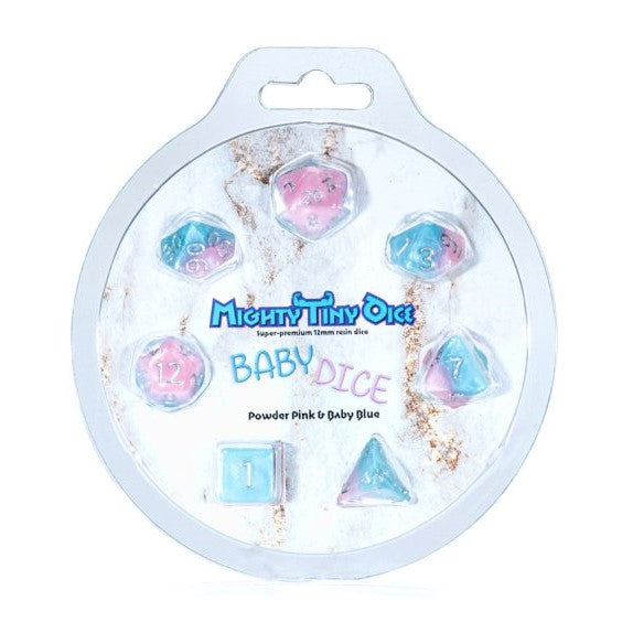 Mighty Tiny Dice are the world first and only resin mini dice! At a base of 12mm, and featuring easy-to-read numerals, these mini RPG dice are dice both you and your GM can agree on. And since they’re made with our air-bubble-free resin, instead of with air-bubble-rich acrylic plastics that all other mini dice are made with, they’re heavier, denser, and much better balanced than mini dice sets of the past!