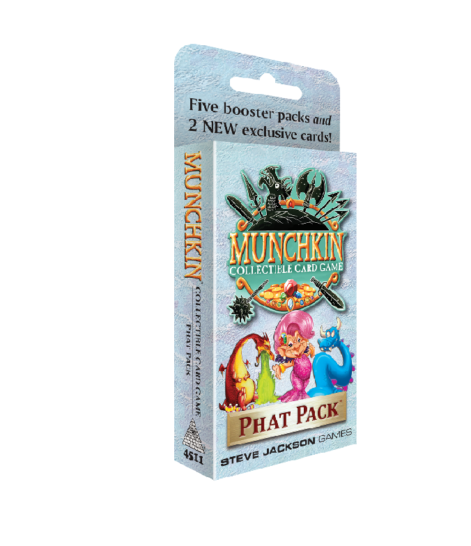 Customize your deck and complete your collection with the Munchkin Collectible Card Game Phat Pack! You'll find three Munchkin Collectible Card Game core booster packs, one The Desolation of Blarg booster, one Fashion Furious booster, and two surprise (new!) Munchkin Collectible Card Game cards, randomly chosen from 12 possibilities!