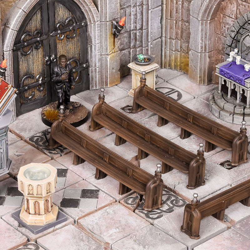 Bring your tabletop to life with this Village Church set. This set includes 14 pieces of scenery to customise your tabletop.