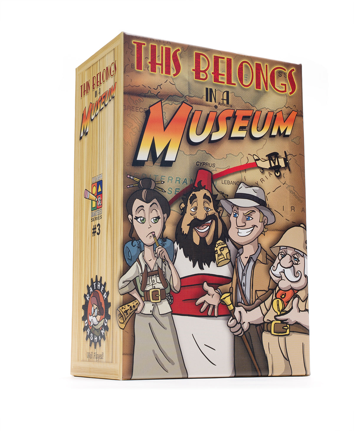 In This Belongs in a Museum, players compete to become the most revered archaeologist in the world. Traverse seas and mountains, and use airports to connect dig sites to your base camp. Collect valuable artifacts and outwit your rival colleagues in this new addition to the Drawn & Quartered line of easy-to-learn, strategic tile-laying games.